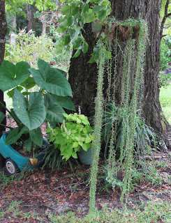 I am linking up with Tootsie and Tracie for weekend garden parties. I know it's been some time since I have joined these parties. I have been focusing on my crafts more while waiting on my hip issues to be diagnosed, bending and squatting have been no no's. How does one garden without being able to perform these positions? (Some of you have asked how do I sit on the floor. I extend my right leg out, and I shift positions about every ten minutes or so) So the garden has been left on it's own, therefore making true, things left on their own go from order to disorder. I know, there is never true order in any garden. (no wide photos)